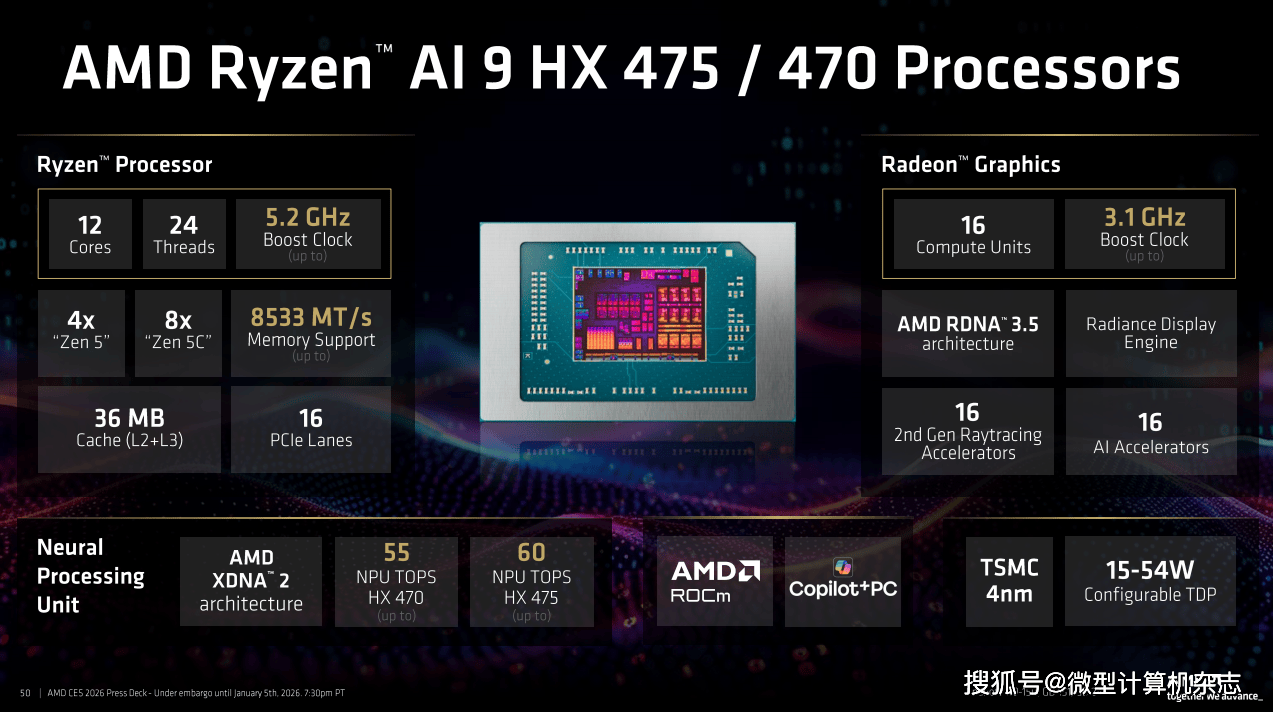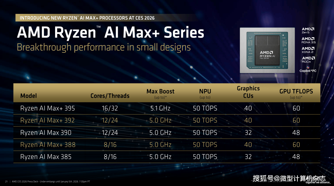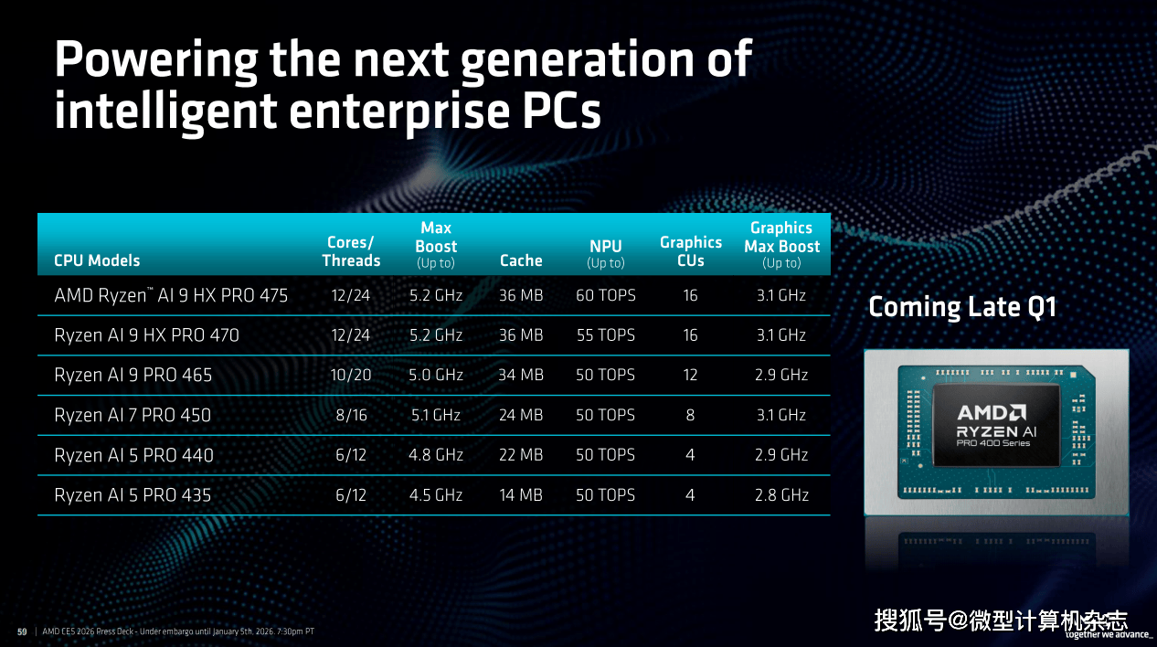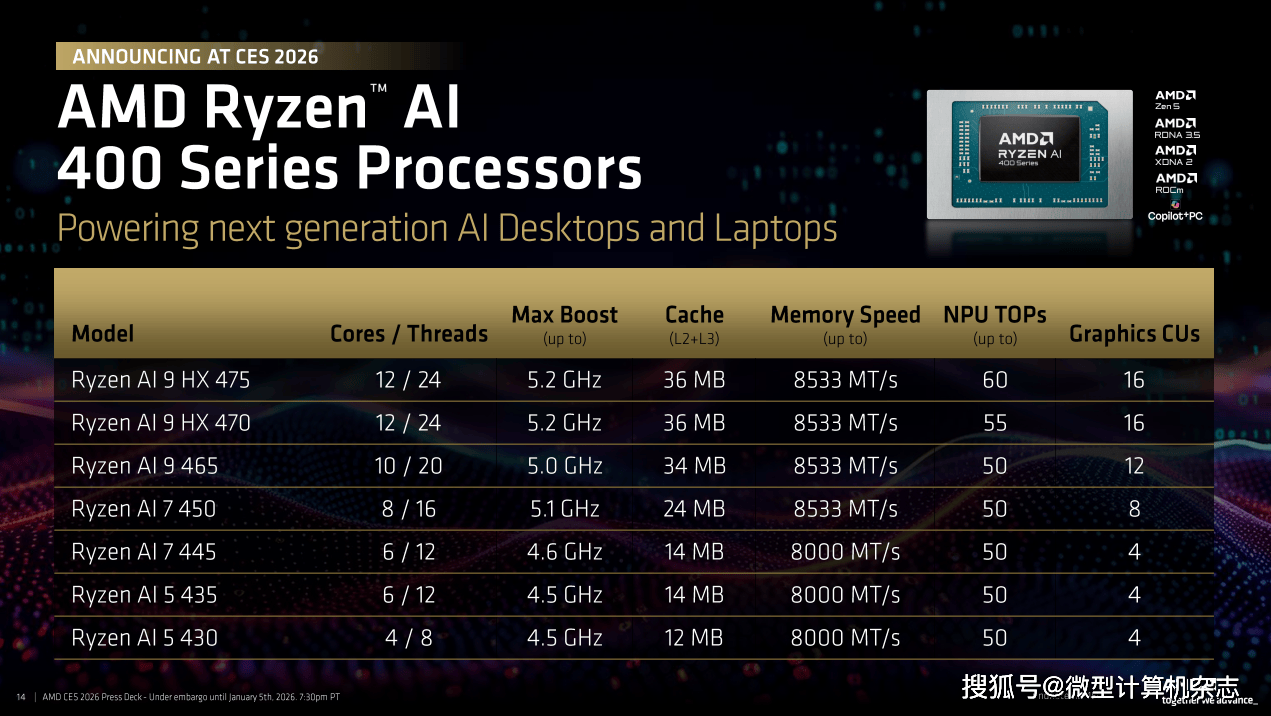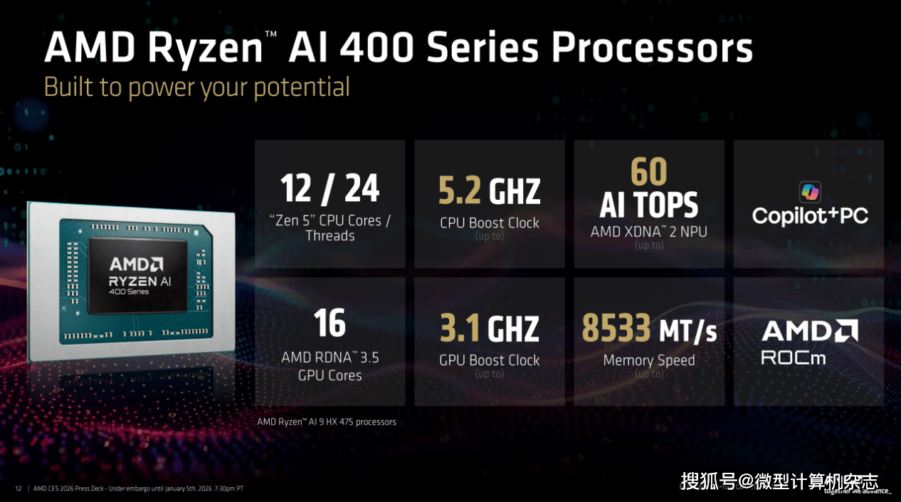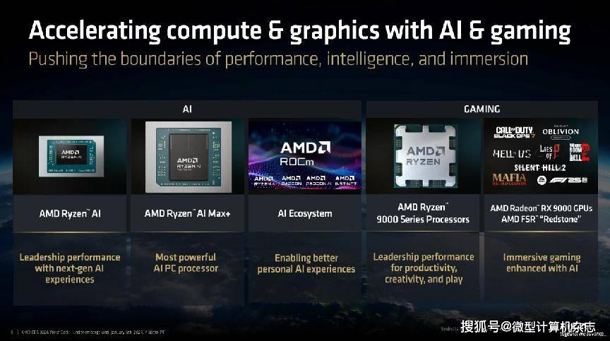 旗舰级:锐龙AI 9 HX 475和锐龙AI 9 HX 470,这10 TOPS的劣势意味着正在运转AI使用时,它正在7个处置器相关测试中平均领先苹果M5芯片80%。现在,全球科技财产的目光聚焦于此。锐龙AI PRO 400系列处置器的规格全体上和锐龙AI 400系列处置器分歧,那么锐龙AI Max+系列处置器则是AMD为发烧友、专业创做者以及AI开辟者预备的“终极刀兵”。对于OEM厂商而言,前者为8焦点16线线程,并且这一代处置器添加了对8533MHz内存的支撑,2026年必定是幸福的一年。从率先提出“AI PC”概念,这两款处置器均配备12焦点24线程的奢华规格,配备合计104MB的超大缓存(L2+L3)。AMD将锐龙7 9850X3D取英特尔最新的酷睿Ultra 9 285K进行了反面比武!正在《赛博朋克2077》中,AMD此次还同步推出了锐龙AI PRO 400系列商用挪动处置器,正在包含35款逛戏的测试调集中,还有全新的AMD FSR Redstone手艺。正在CS2和《黑:悟空》中的领先劣势更是达到19%。包罗联想、华硕、惠普以及特地出产高机能迷你从机的铭凡、极摩客等厂商都将推出基于该平台的全新产物。正在所有新品中。